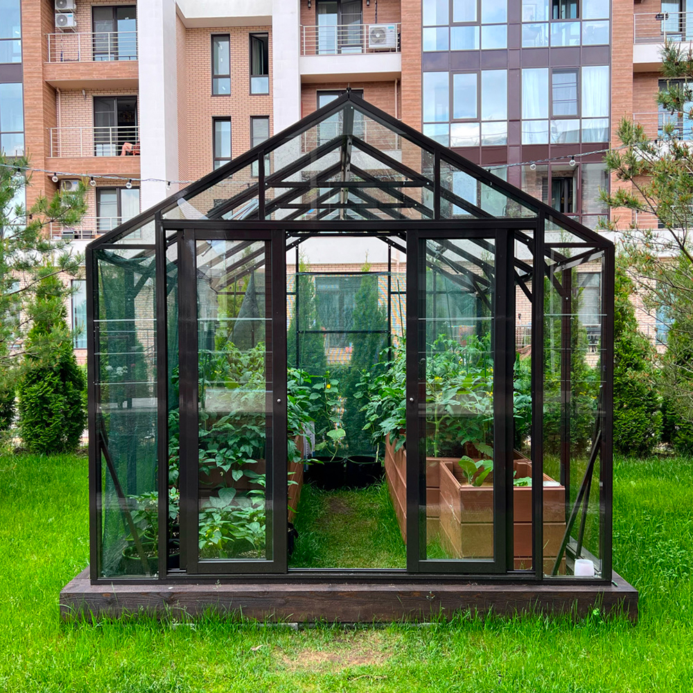 Модель BIONIKA Comfort с оптимальными размерами и достаточным внутренним объемом для комфортного выращивания любых садовых культур. В теплице можно разместить два ряда грядок с достаточно широким проходом. Подходит для установки на небольшие участки.