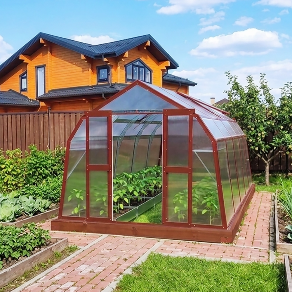 НАРВА – одна из самых компактных теплиц с поликарбонатом для выращивания помидоров, огурцов и перцев. Отличное решение для небольших дачных участков. При небольшой ширине, модель обладает достаточной высотой, благодаря чему конструкция приобретает визуальную легкость, а внутри создается ощущение простора.