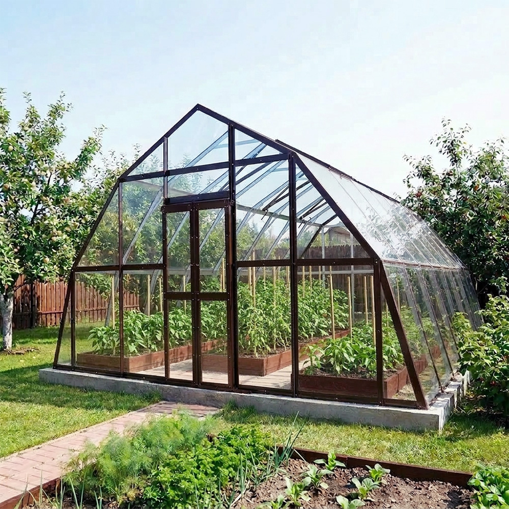 Большая модель АМУР с трехметровой высотой предназначена, в первую очередь, для обеспечения многочисленной семьи свежими овощами и зеленью. Не составит особого труда и выращивания в этой теплице высокорослых садовых культур. Как и остальные модели GLASS HOUSE, эта конструкция обладает повышенными прочностными характеристиками и достаточно продолжительным сроком службы.