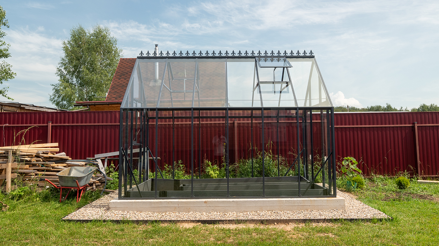 Теплица ЭСТРЕЛЛА 2500 - классика английского стиля. Алюминиевый каркас, закалённое стекло и изящные английские очертания, которые украсят любой участок. Модель подходит как для дачи, так и для загородного дома.